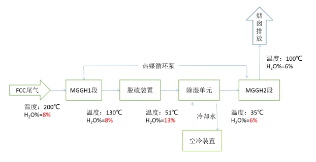 除濕后的煙氣經(jīng)MGGH 2段加熱至100℃后排至煙囪;